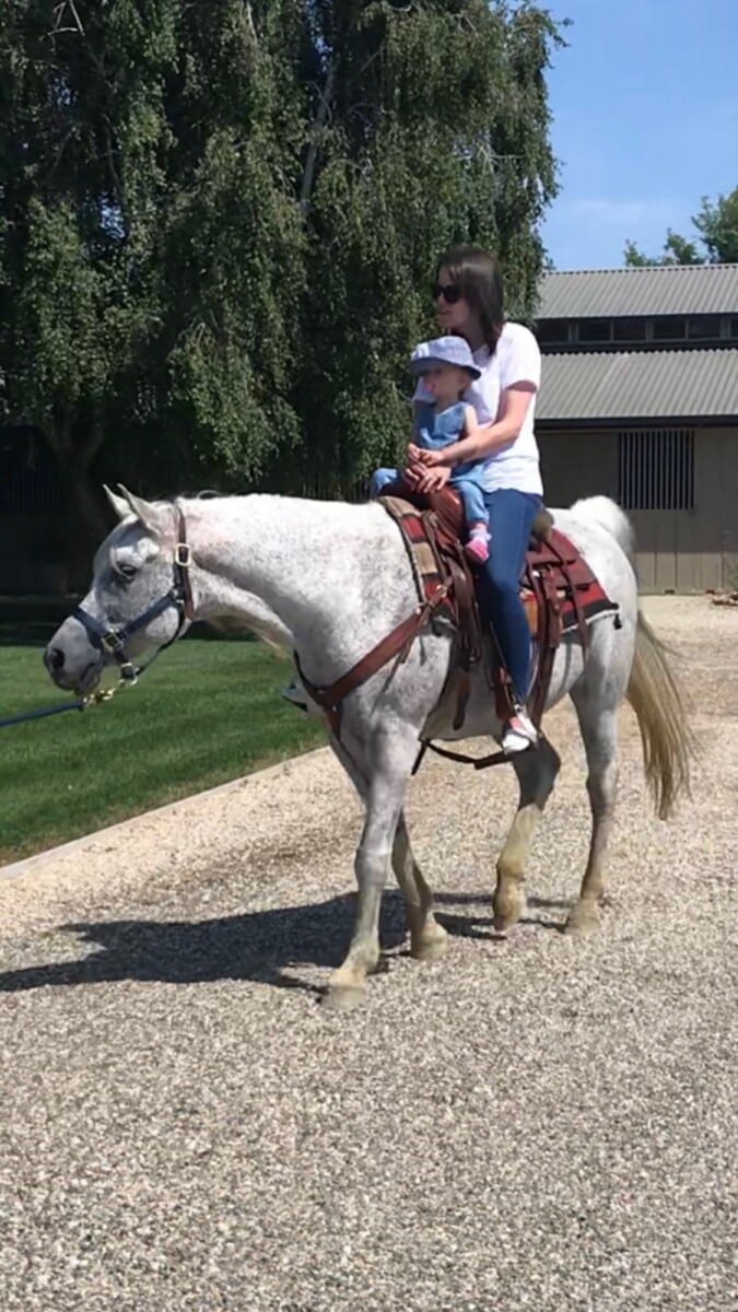 Originally bought many, many years ago as a black grey unbroken 3 year old as a first horse for our 4 year old son, Fabian has done it all – he has been ponied behind Om El Shaheed with small children for mile upon mile upon mile, through traffic and wilderness alike, over water, through water, across the train tracks, you name it.. he has done ranch work and working cows, to beach rides, mountain rides and everything in between. Time and time again, without fail, he has proven to be worth his weight in gold.